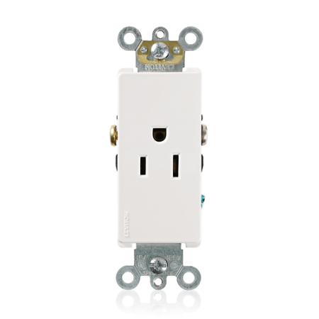 • Leviton 16241-W Decora Single Receptacle Commercial Grade 5-15R 15A 125V Side Wired – White