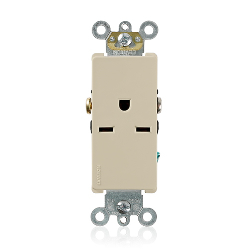 15 Amp, 250 Volt, NEMA 6-15R, 2P, 3W, Decora Plus Single Receptacle, Straight Blade, Commercial Grade, Self-Grounding, , Side Wired, Steel Strap – Ivory , UPC: 07847747443