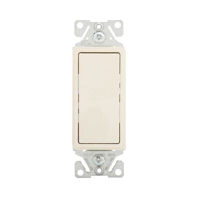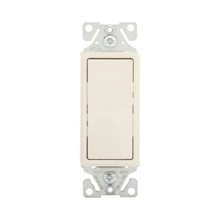 15 Amp, 120/277 Volt, Decora Rocker Double-Pole AC Quiet Switch, Residential Grade, Grounding, Quickwire Push-In & Side Wired – Light Almond, UPC: 07847727498